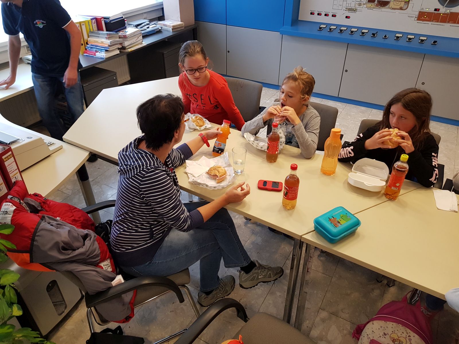 Nachdem keine Fragen mehr offen waren, gab es als Abschluß des Besuchs dann eine Stärkung, die auf Grund des nicht so tollen Wetters - kurzfristig improvisiert - im Eingangsbereich des Bürogebäudes eingenommen wurde.